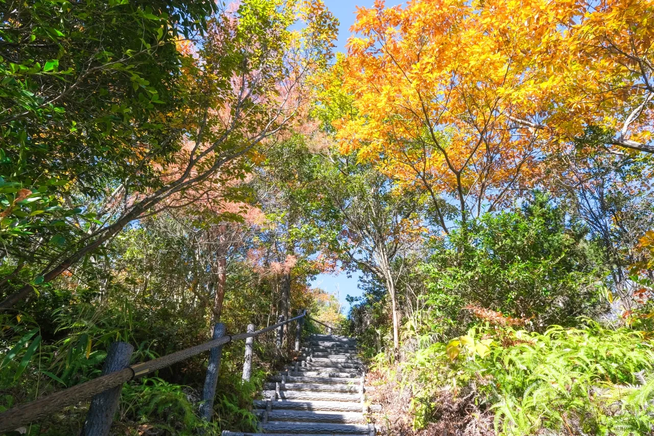 自然が多く残る山なので、もしかすると険しい道を想像するかもしれません。しかし実際は、階段や休憩所が整備されており、老若男女誰でも楽しみやすいスポットとして人気を集めています。