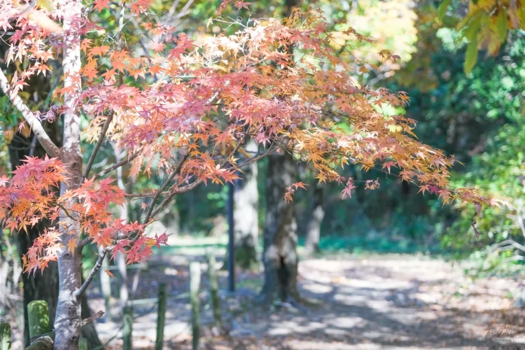 たとえば秋のハイキングにおすすめの、もみじの広場コース。赤く色づいたもみじが美しく、毎年12月初旬ごろまで紅葉が楽しめます。