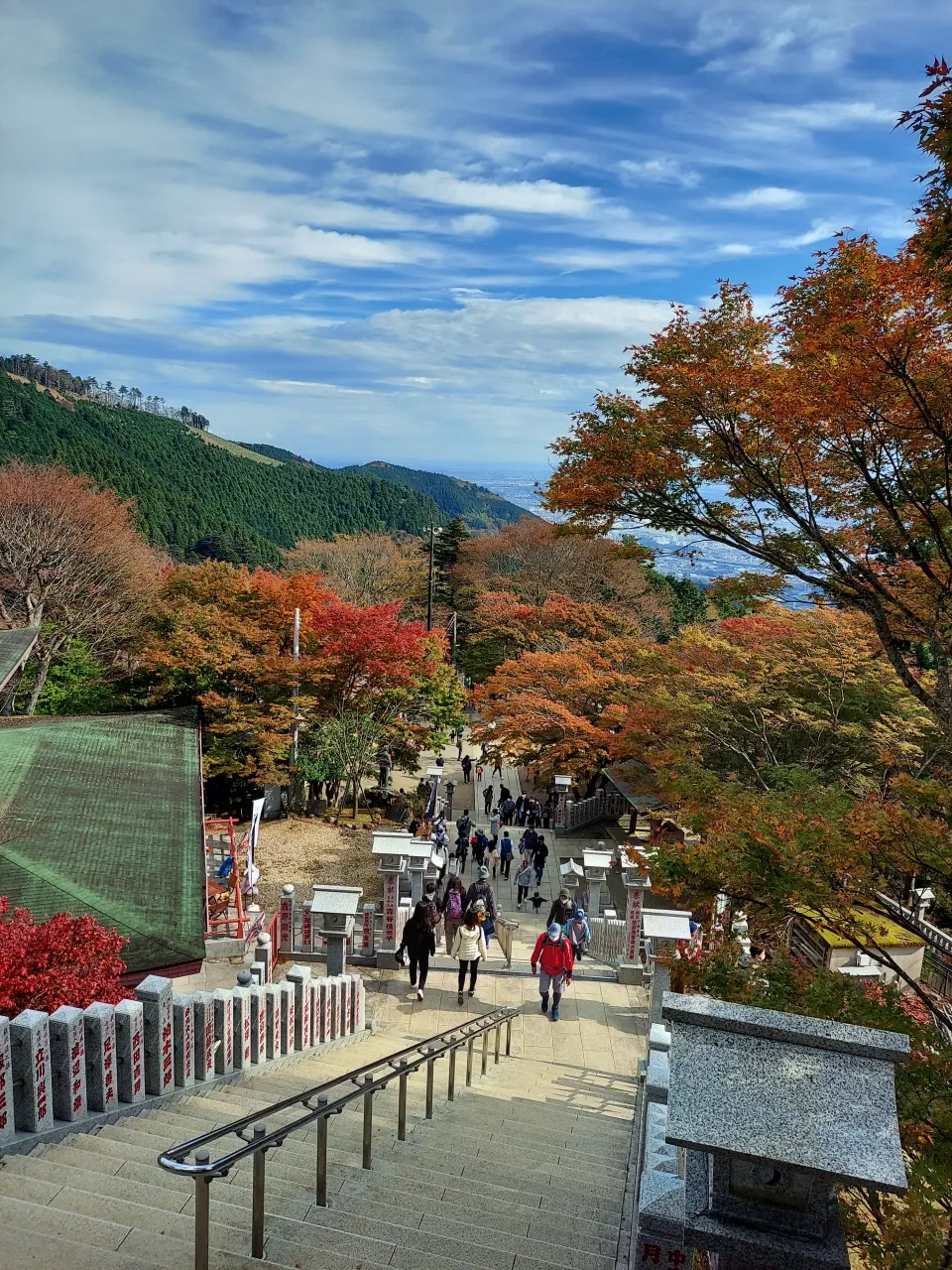 石段を登ると、さらに絶景が広がります。色づいたもみじと見晴らしの良い景色の中で、記念撮影してはいかがでしょうか。