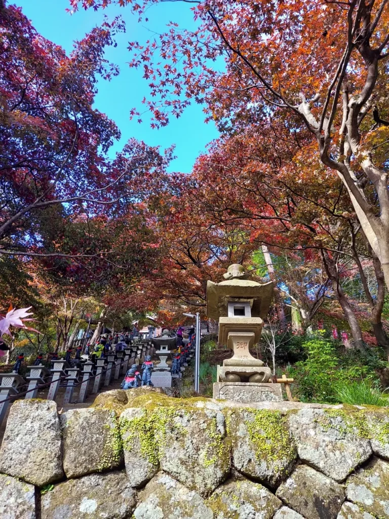 またケーブルカーの途中駅にある大山寺では、石段に沿って真っ赤な紅葉が広がっています。幻想的な景色のため、写真映えスポットにピッタリです。