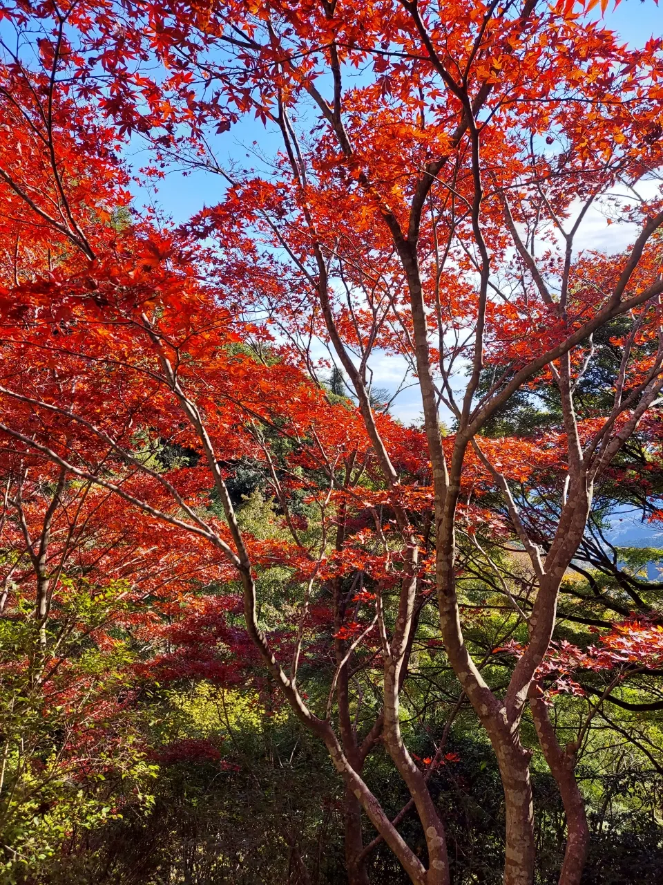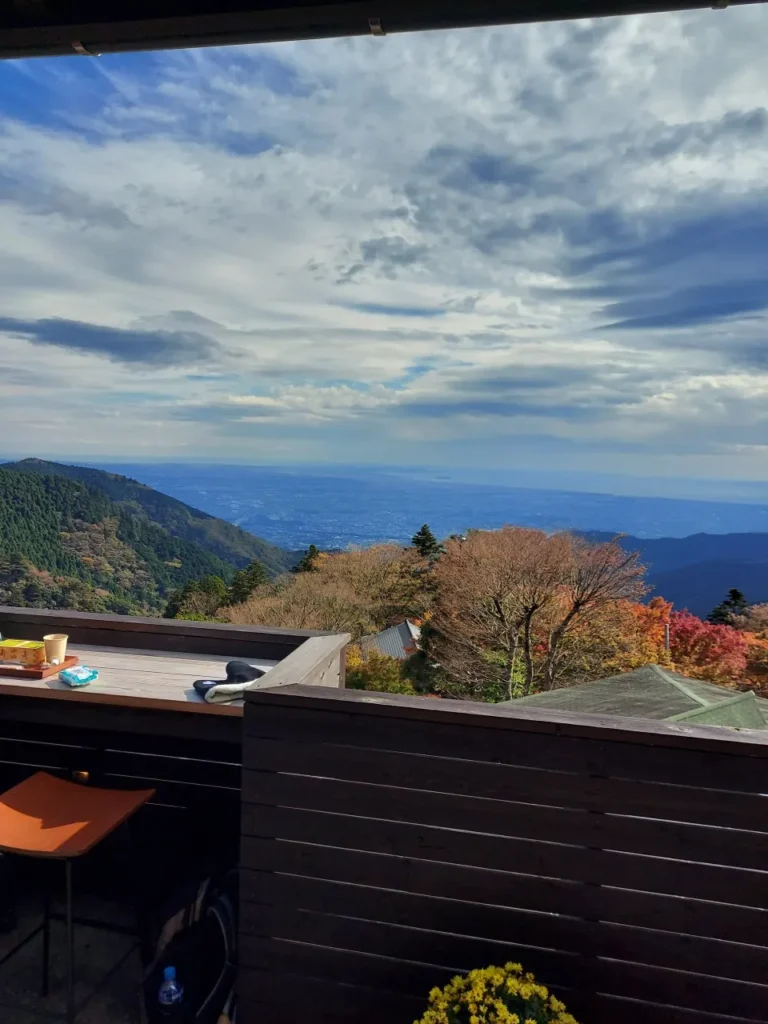 下記は、大山の阿夫利神社下社からの写真です。相模湾まで見渡せる絶景とともに、色づく紅葉を楽しめすよ。