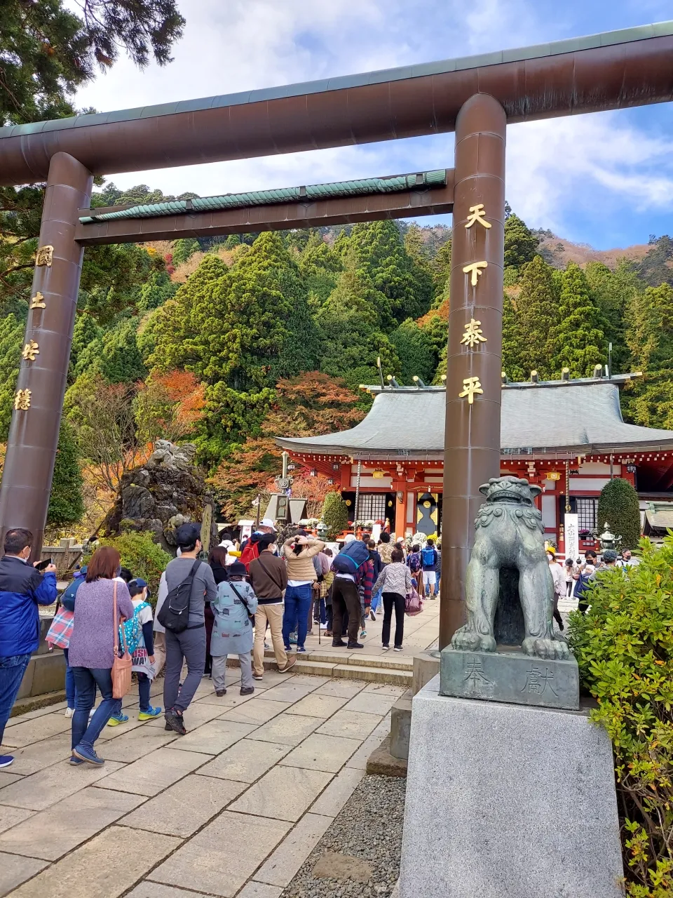 阿夫利神社は、歴史ある建物と大きな鳥居が特徴的。この日は多くの参拝者で賑わっていました。