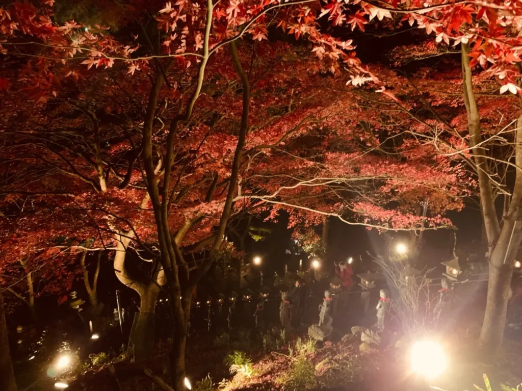 また紅葉の時期には、大山寺のもみじもライトアップされます。昼間とは違った、幻想的な空間が広がりますよ。