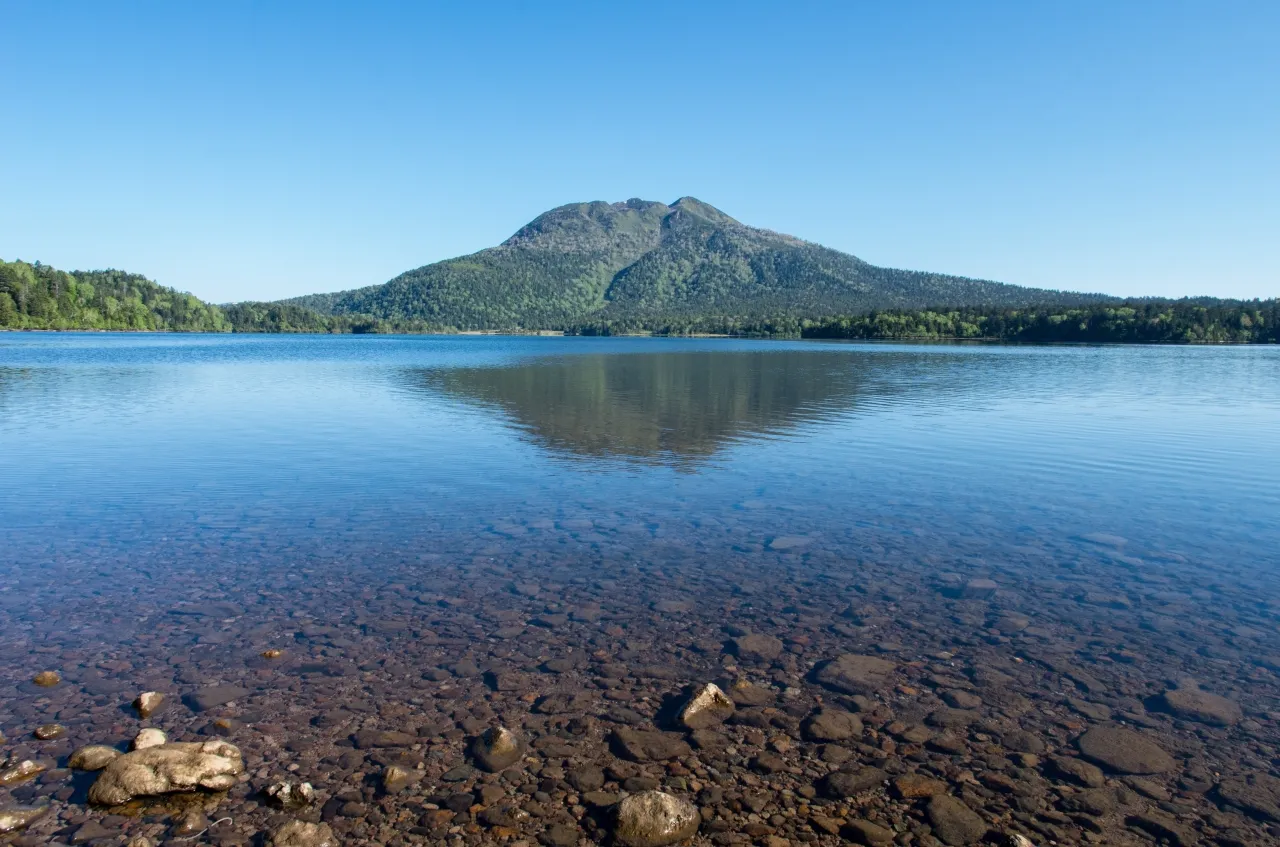 三平峠を超えて20分ほど経過すると、尾瀬沼入口に到着。視界が一気に開け、目の前に広大な沼が現れます。美しい尾瀬沼と、その奥にそびえる日本百名山に数えられる名峰燧ケ岳(ひうちがだけ)を眺めながら一休みしましょう。