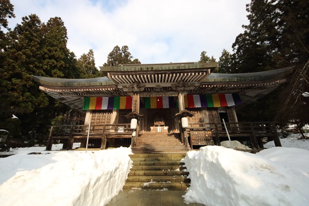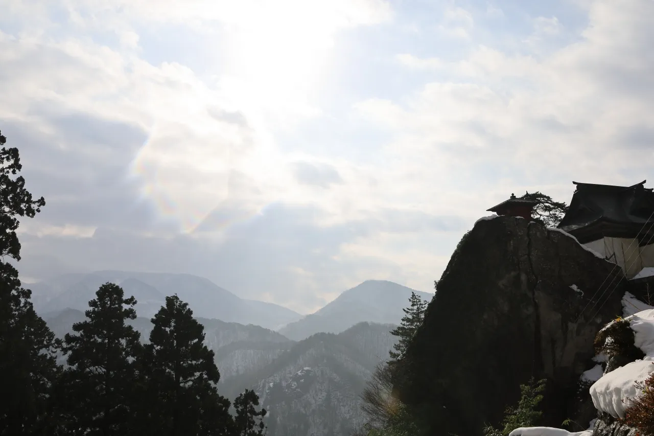この五大堂は崖の上に建てられており、立石寺で最も素晴らしい景色を楽しめます。雪の日に見た景色は、水墨画のようにモノクロで美しい雪景色が一望でき、一生忘れられない想い出となりました。