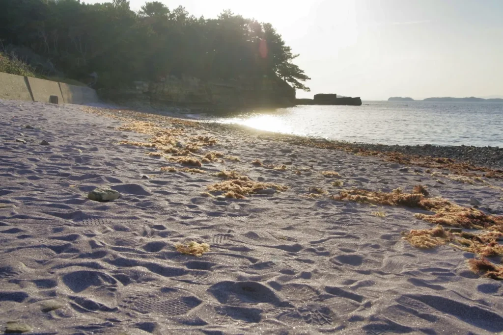 自然豊かな佐久島には「新谷海岸(にいやかいがん)」があり、そこでは全国的にも珍しい紫色に輝く砂浜が見られました。