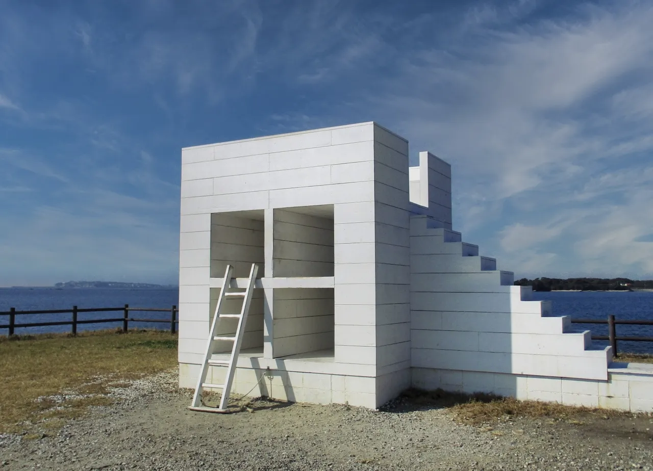 おひるねハウスで楽しげな写真を撮影したら、佐久島の東側に位置する大島へと続く桟橋へとタイヤを走らせましょう。その桟橋の途中には、おひるねハウスと対になるアートとして人気を博す「イーストハウス」が待っています。