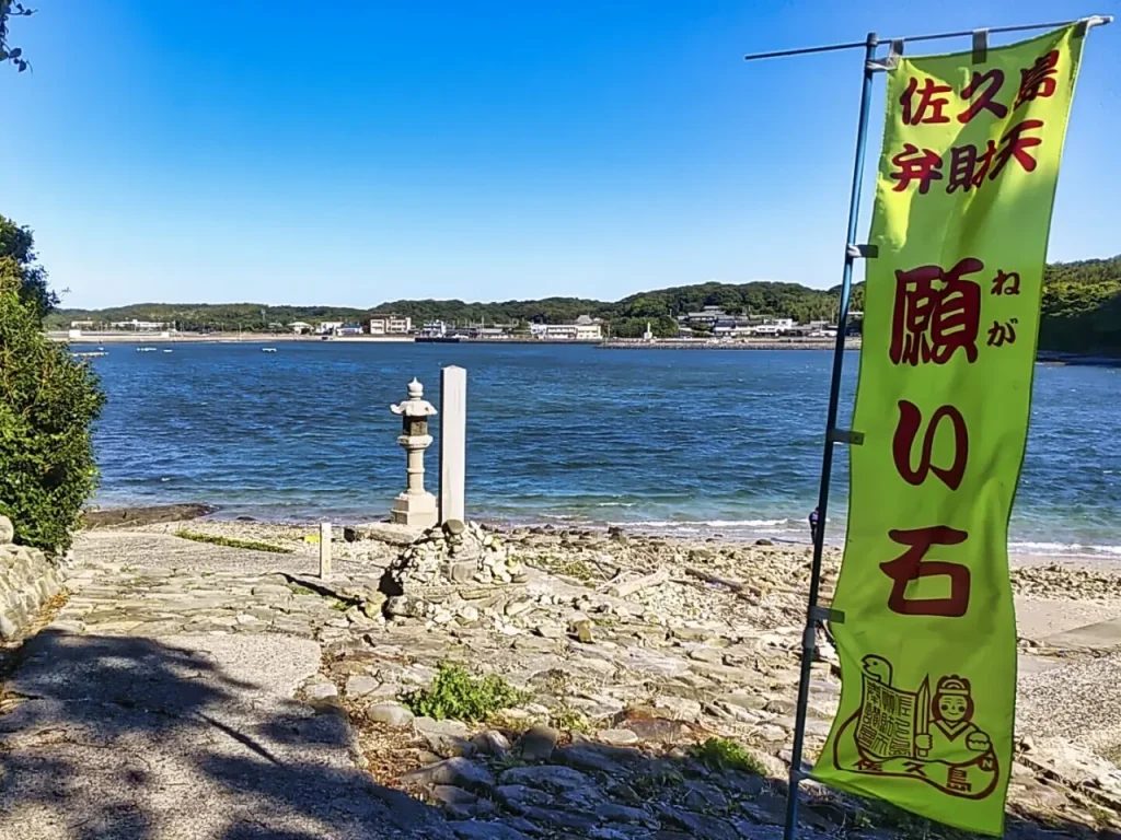 佐久島には恋愛成就のパワースポットが二つ存在します。ひとつは紫色の砂浜で有名な「新谷海岸」で、もうひとつは願いが叶うという伝説が残る弁天島の「願い石」です。