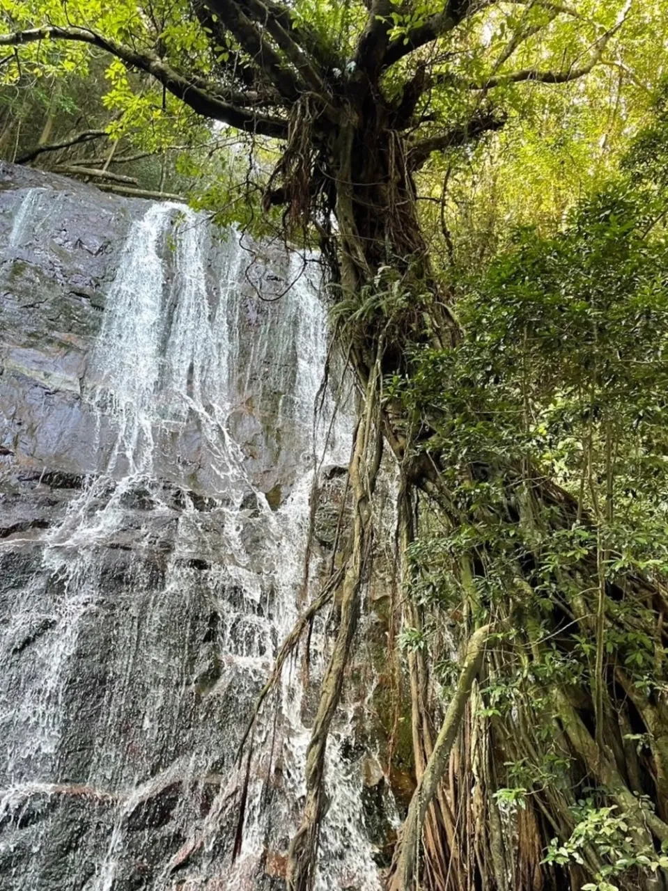 滝から流れてきた水が川となって流れる様子や水の音、揺れる木々からこぼれる木漏れ日を感じながらまったりとした散策デートを楽しんでいると、目の前に三段目の滝が現れます。
