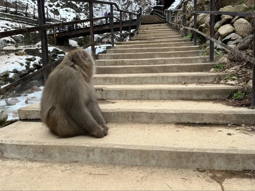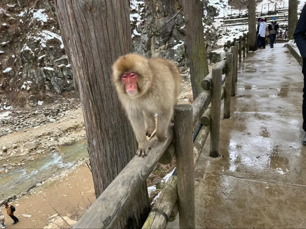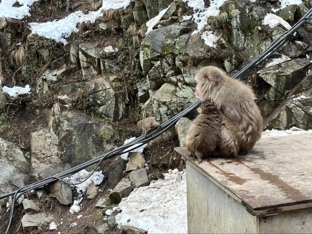 志賀高原の魅力の二つ目は、野生のサルと近距離で触れ合えること。