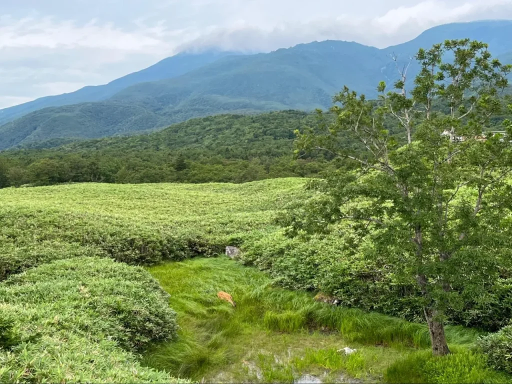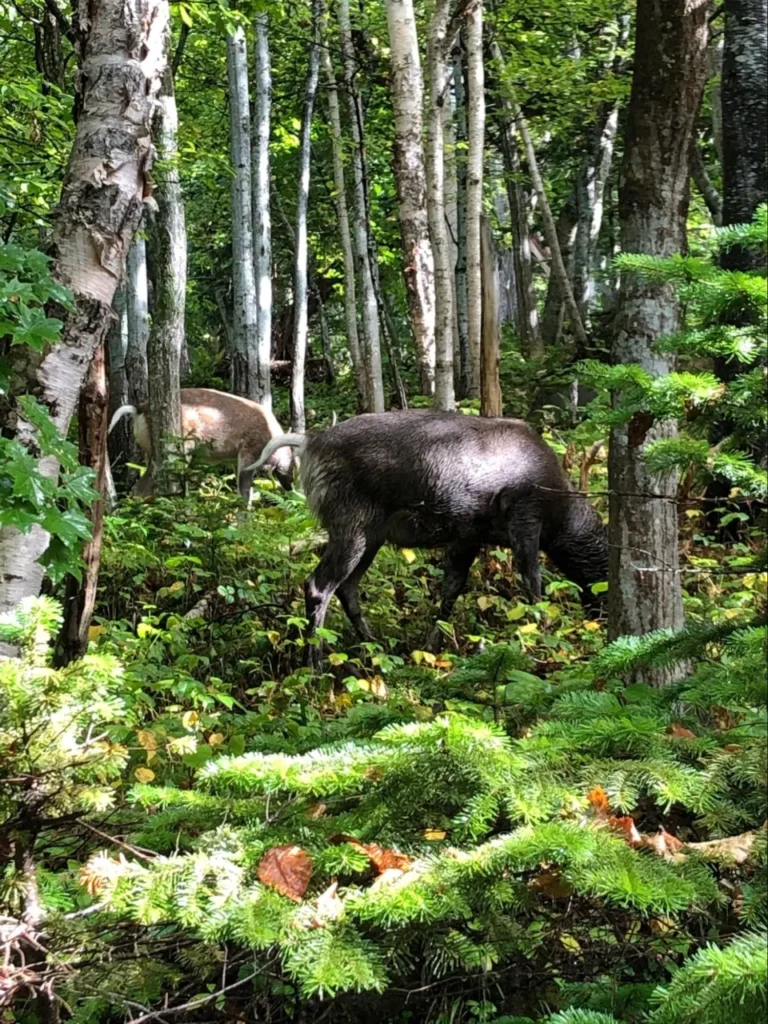 上記は知床五湖の高架木道で発見した、メスのエゾシカです。知床の雄大な緑が広がる景色に、野生の鹿が映るその光景は、まさに自然のすべてが詰まっています。