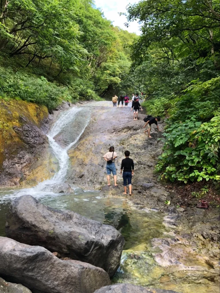 しかしカムイワッカ湯の滝は特別な整備が施されておらず、時に滑落事故も発生します。とくに地面がぬかるんでおり滑りやすいため、滑りにくい靴を準備したり、お互いや周りの人と協力したりしながら楽しんでくださいね。