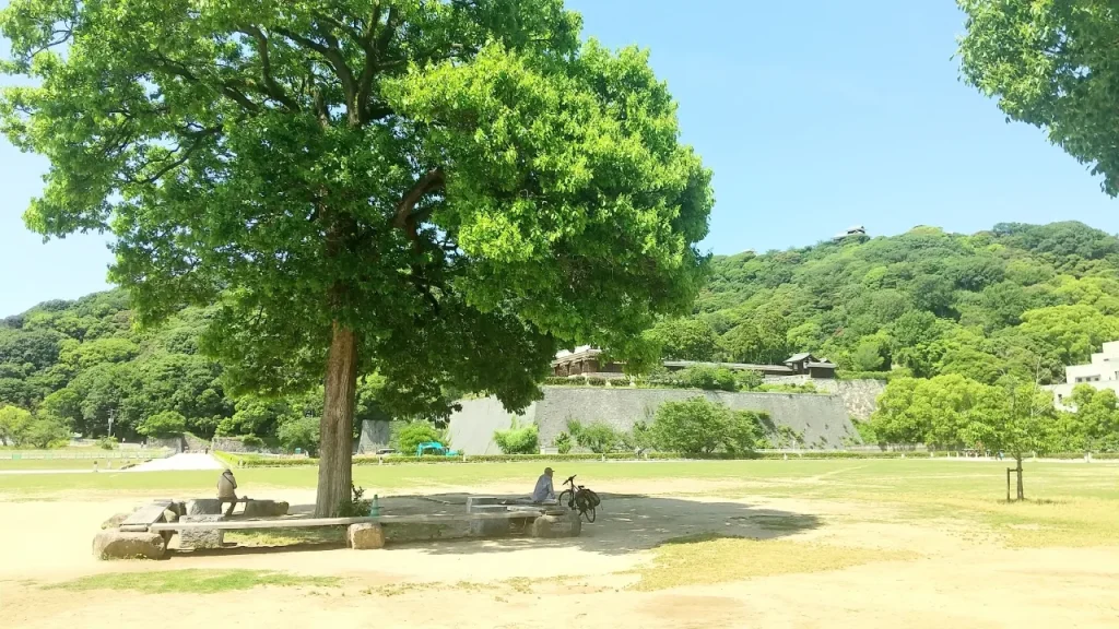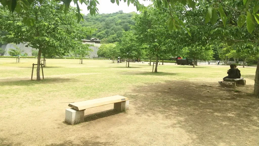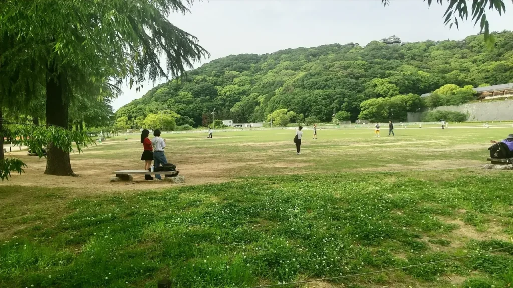 - やすらぎ広場:松山城の天守を見られたり、綺麗に整備された芝生の上でのんびりできたりする