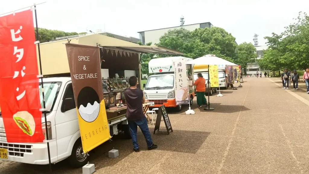 平日・土日を問わず、ランチタイムにはキッチンカーが出店していることも多く、その場で出来立ての料理を楽しめますよ。