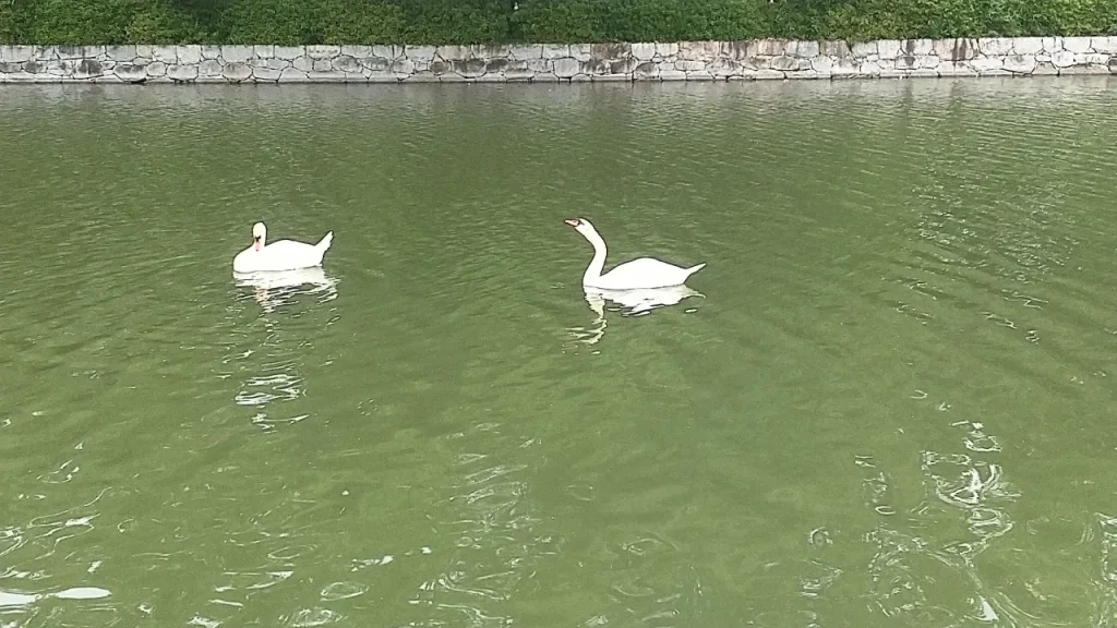 城山公園のお堀には白鳥や鯉、亀などが生息しています。白鳥の中で最も大きいコブ白鳥が4匹生息しており、見ているだけでも優雅な気持ちになれました。