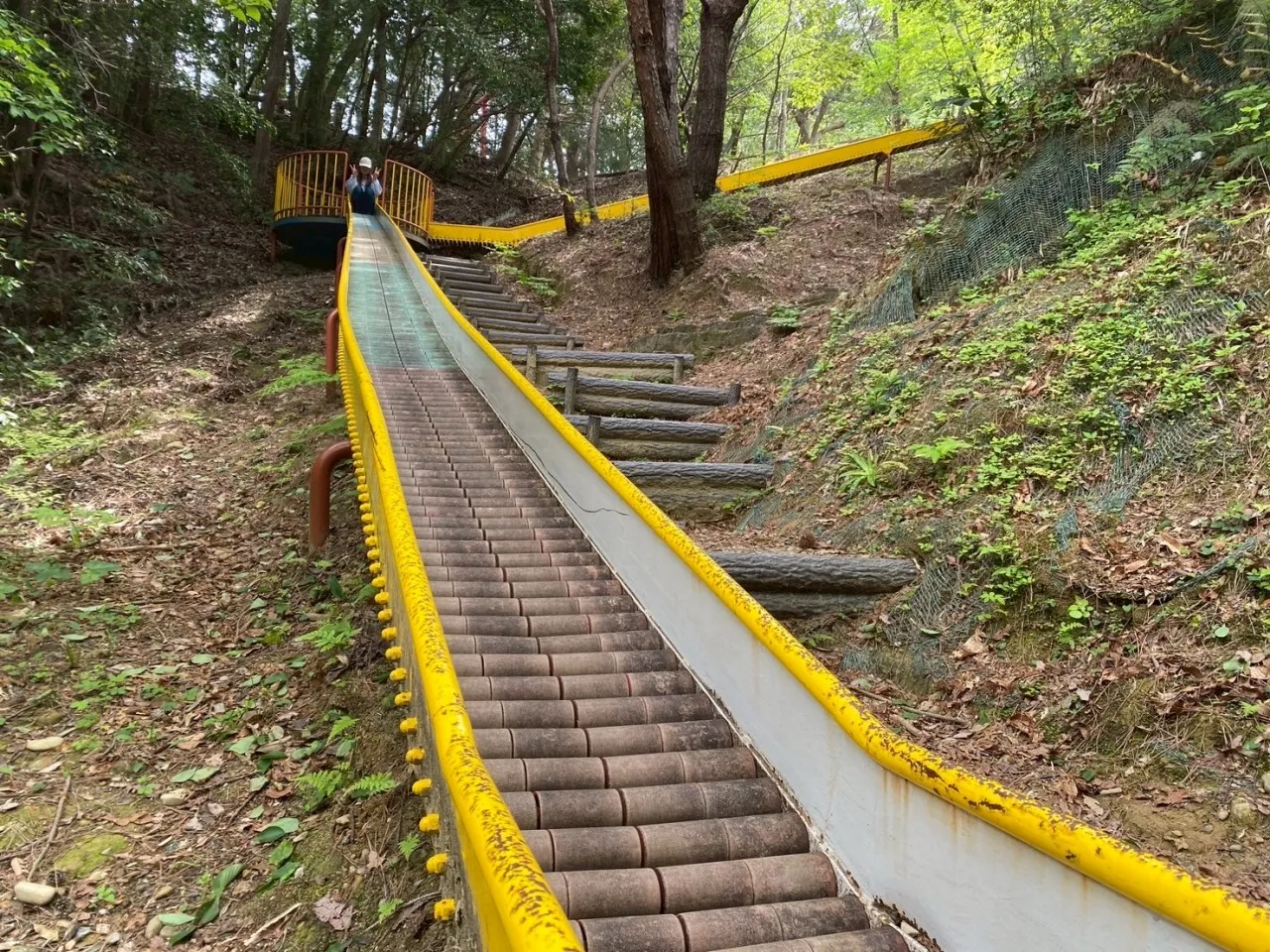 特にローラー滑り台は、地形の高低差を活かして設置されていてスリル満点。滑りながら獅子ヶ鼻広場へと一気に移動できる近道にもなっています。