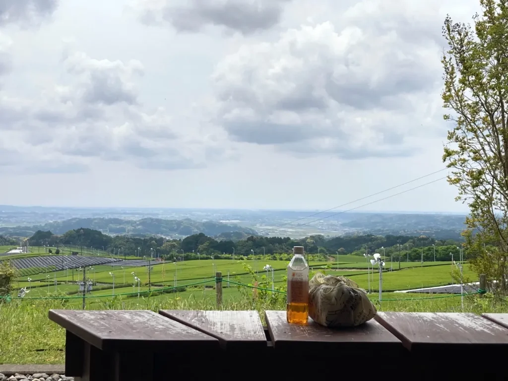 新緑のお茶畑を眺めて一休みしよう