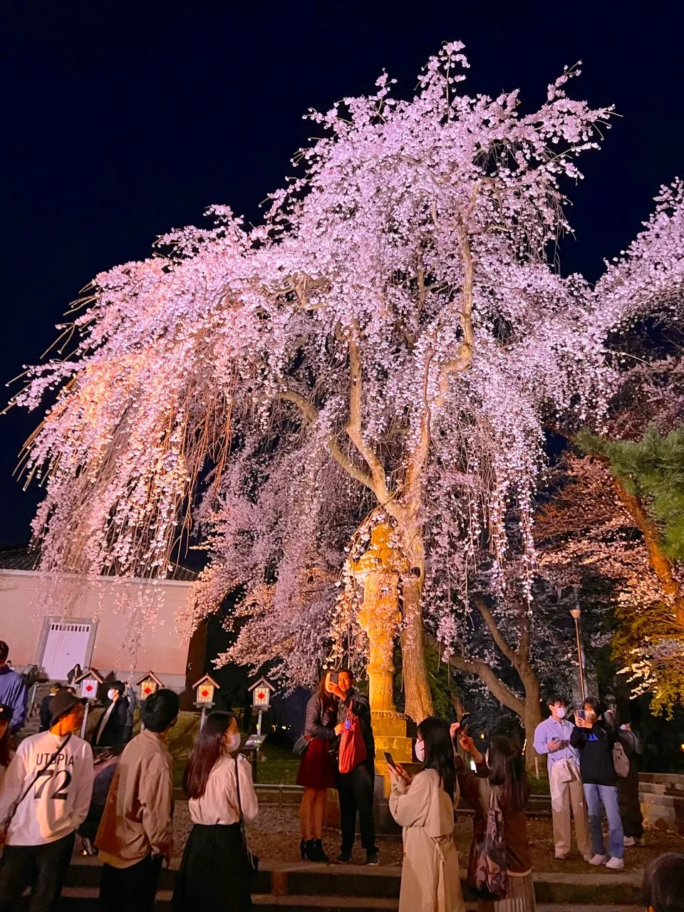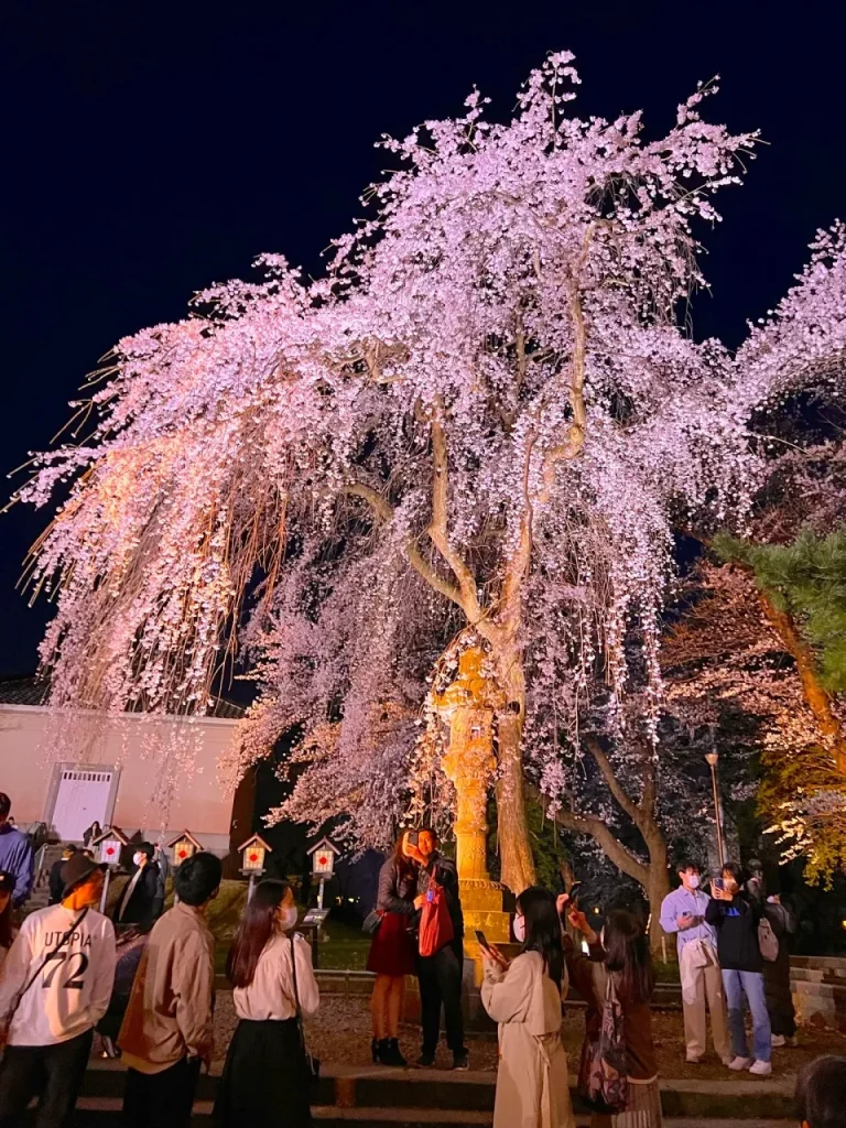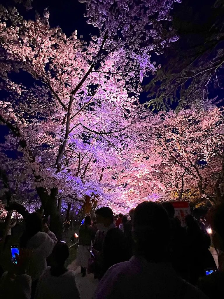 昼もさることながら、夜のライトアップされた桜は日本三大夜桜に選ばれるほどの絶景。しだれ桜のライトアップや100本の桜が左右に植えられた桜のトンネルは、思わず立ち止まって見惚れてしまうほどです。