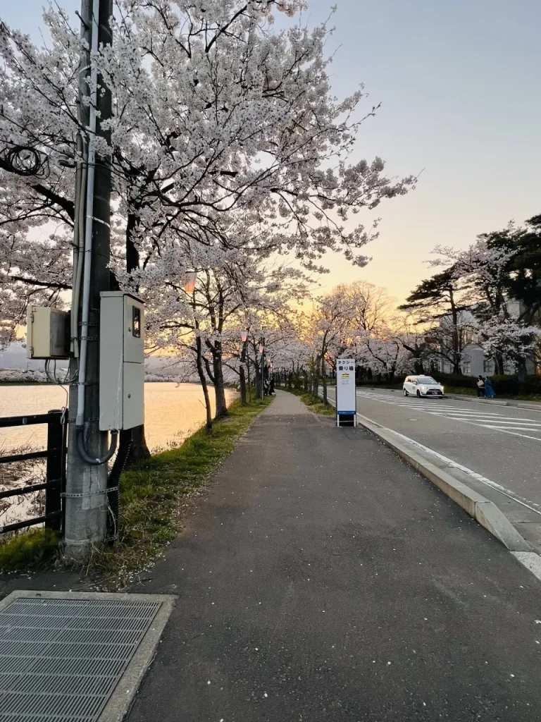 18時ごろに高田駅へ到着する電車に乗り、高田駅から高田城址公園に向かってまっすぐ夜道を歩きましょう。時期にもよりますが、18時ごろに高田駅に着く電車なら、夕方から夜にかけて少しずつ移り行く景色を楽しめるのが魅力のひとつです。