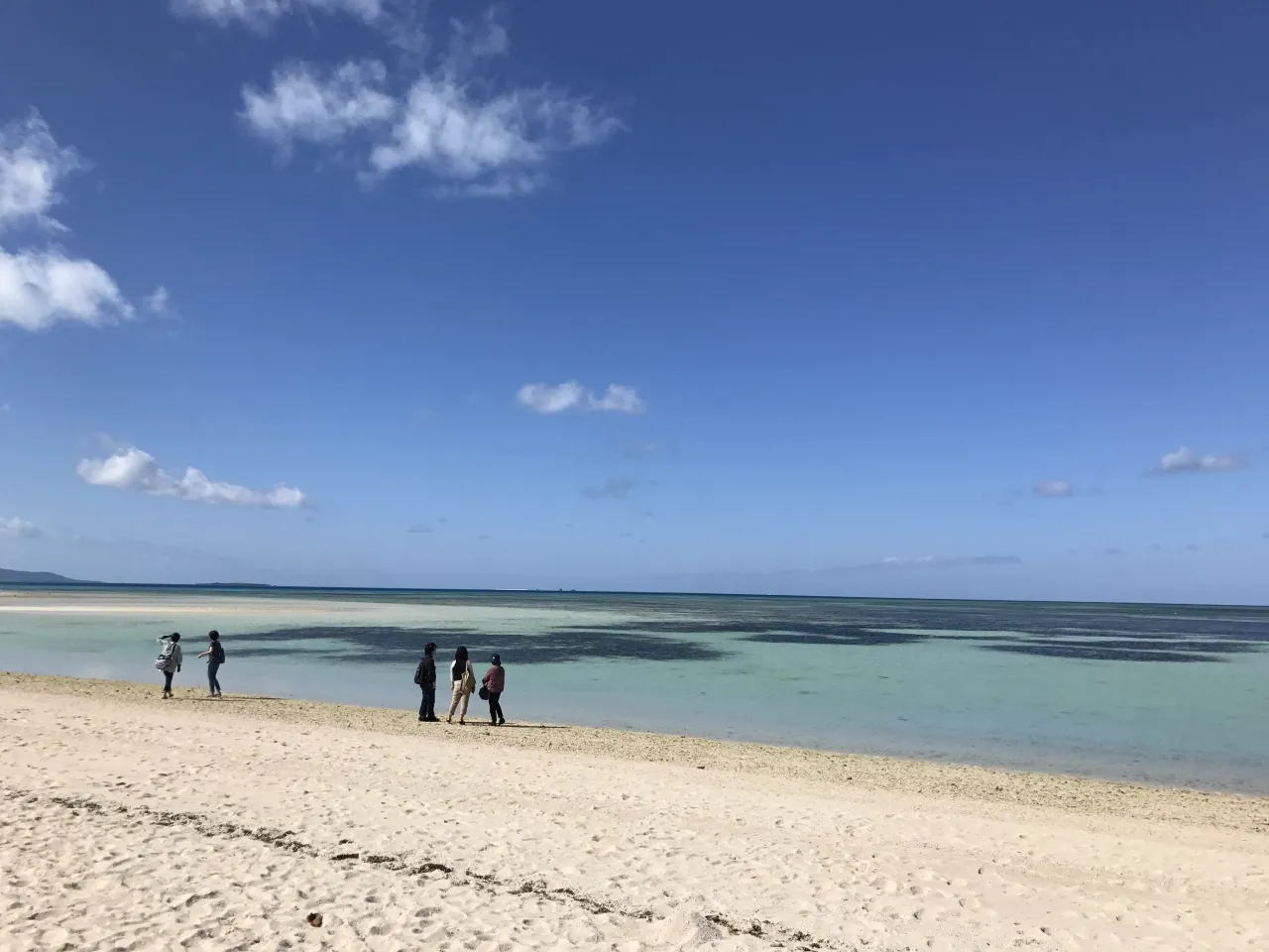 ランチでお腹を満たしたら、外周道路を走ってビーチを目指しましょう。まず向かいたいのは、どこまでも続くような遠浅の白浜が美しいコンドイ浜です。