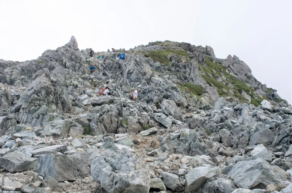 室堂から1時間ほどで標高約2,700mの一ノ越に到着。ここから山頂までは急な岩場が続きます。落石を起こさないよう注意しながら、慎重に登りましょう。