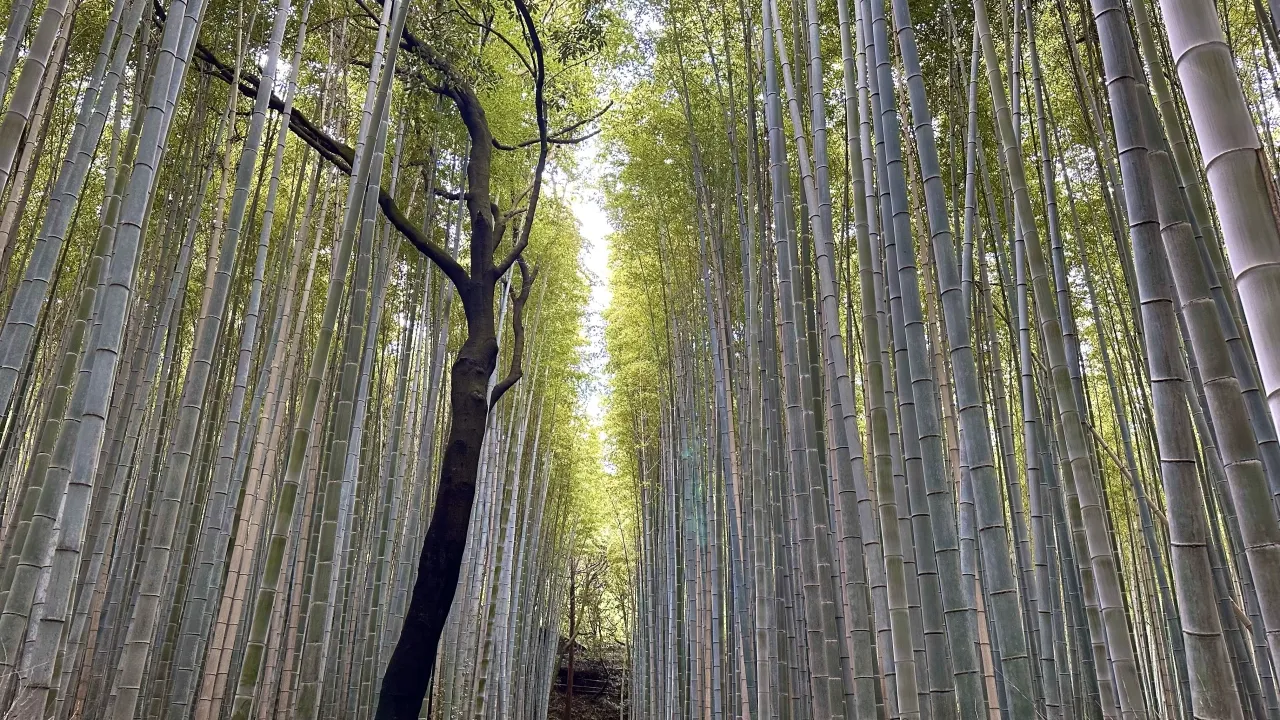 百花苑の緩やかな傾斜を登り切ると、天龍寺北門を出て、そのまま竹林の小径へ抜けます。高低差のある約400mの道は、ちょっとしたウォーキングにぴったり。