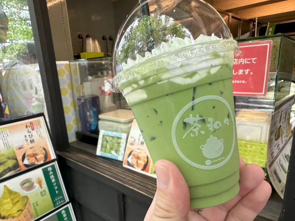 自然浴を存分に楽しんだので、そろそろ喉が乾わく頃。プチウォーキング後のおすすめは、抹茶スイーツ処 茶和々 嵐山店。