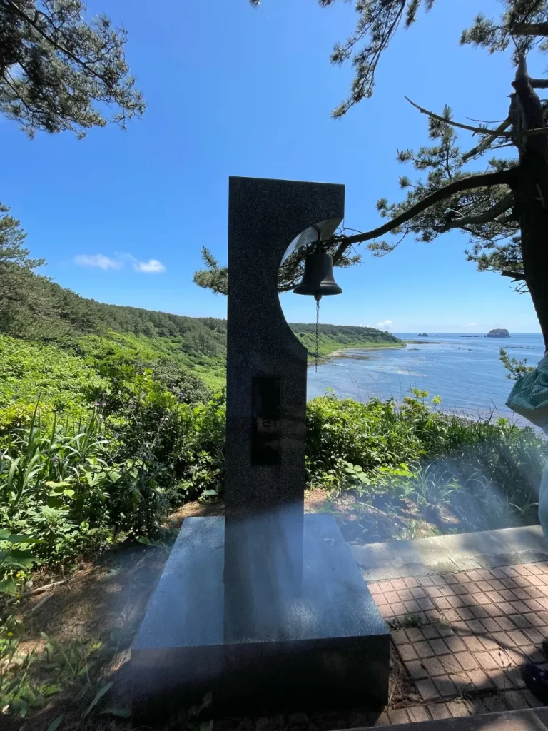 高台にある渚の鐘からは、荒崎海岸の海岸線が一望できます。二人で鐘を鳴らせば、澄んだ鐘の音が海のむこうまで響きわたる、なんともロマンチックな体験ができるでしょう。