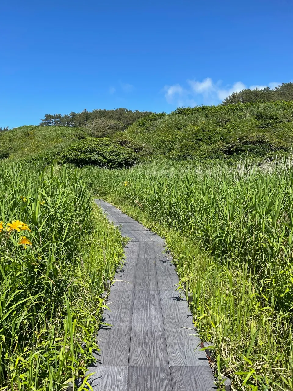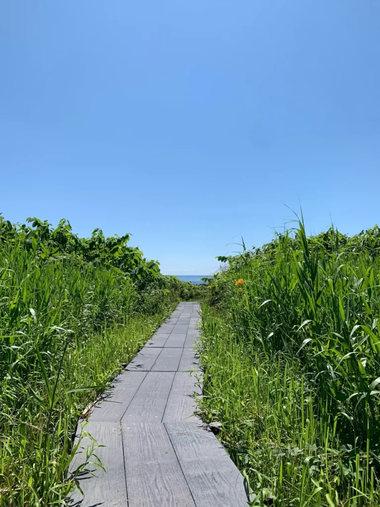 トビシマカンゾウは酒田市の「市の花」に指定されていて、地元の人に古くから愛されてきた植物です。トビシマカンゾウが咲く草原の向こうに青い海が見渡せる、飛島ならではの風景は必見です。