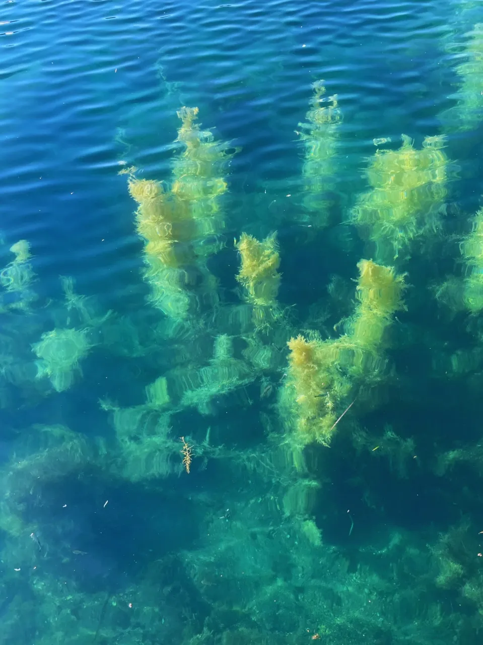 飛島の海の特徴は、透明度抜群のエメラルドグリーン。波止場や港から海をのぞくと、ゆらゆらと揺れる森林のような海草や優雅に泳ぐ魚たちが見られます。