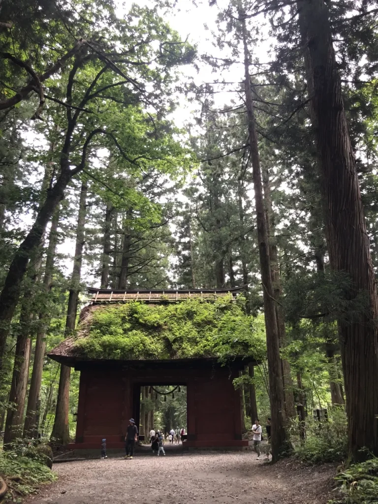奥社は約2km続く自然豊かな参道をぬけた先にあります。参道の中間地点にある随神門を抜けると、その先に広がるのが巨大な杉の並木道。樹齢400年をこえると言われる巨木が連なる姿に、ただただ圧倒されてしまいます。