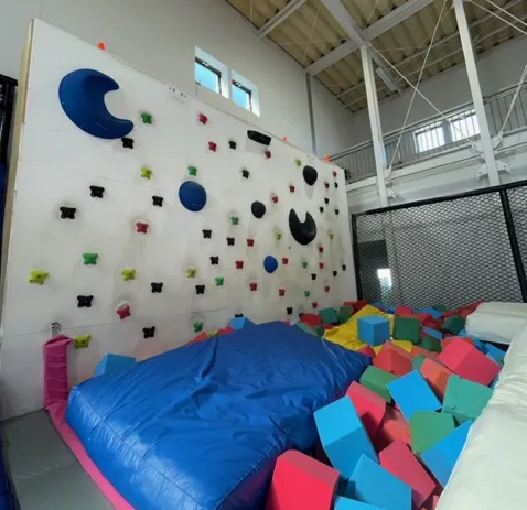 佐藤さん:全13面のトランポリンを常設しています。ウォールトランポリン用2.5mの壁とミニボルタリング、忍者コースなどトランポリン以外にもたくさんの遊具をお楽しみいただけます。