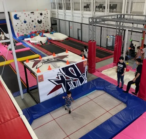 さまざまなトランポリンにスポンジのピットプール、雲梯器具などが設置されており、スポーツが好きなカップルにオススメの施設です。