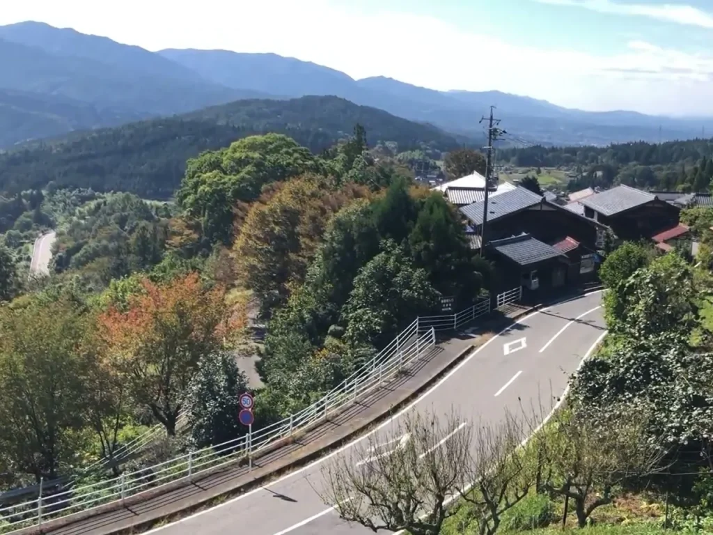 集落の坂道を登り切ると展望台があり、日本百名山のひとつ、恵那山(えなさん)をはじめとする木曽の山々を眺められます。記念写真の撮影にもおすすめのスポットです。