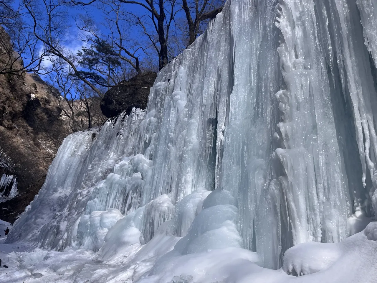 また渓谷の最奥部にある雲竜瀑は、落札約160mにも達する巨大な氷瀑。自然が作り上げた圧倒的なスケールの氷爆に、ただただ圧倒されるでしょう。