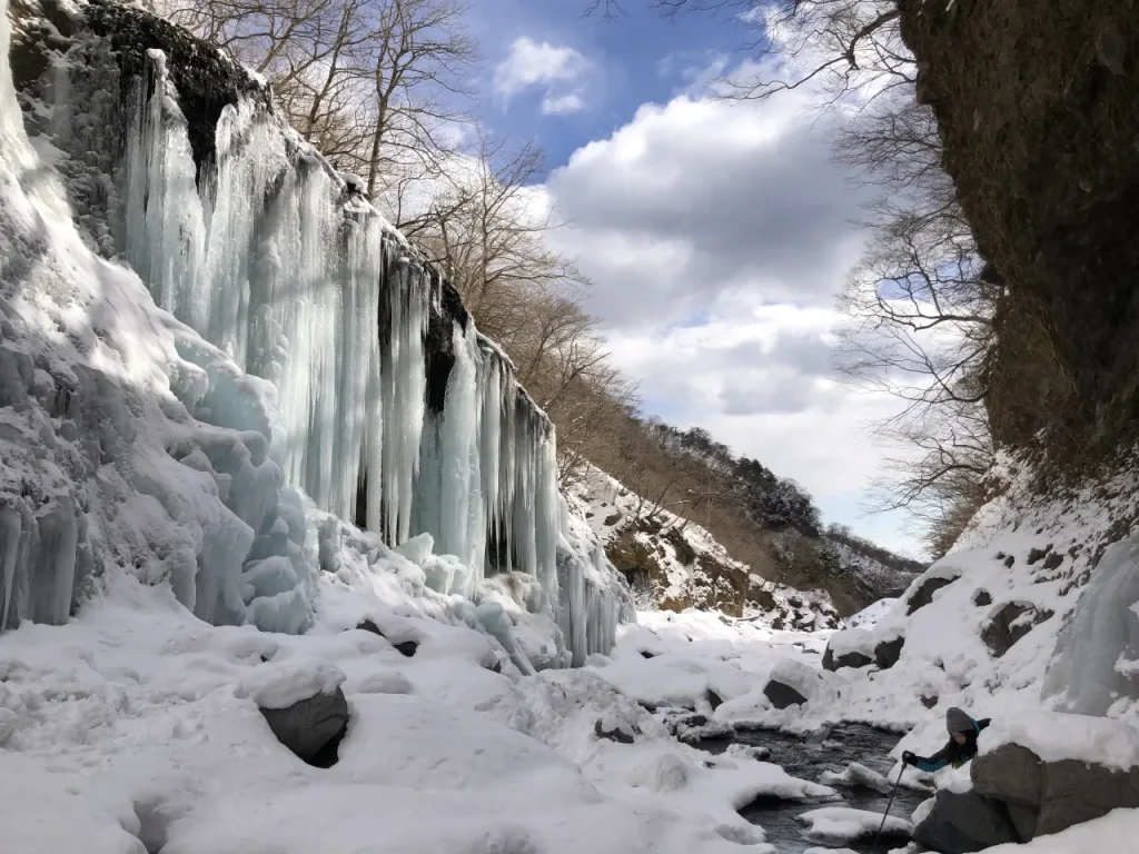 雲竜渓谷の氷爆は登山口へのアクセスが比較的良く、最奥の雲竜瀑への道を除けば危険な箇所も多くないため、雪山初心者でも十分に楽しめます。