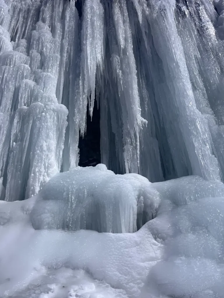 自然が生み出した氷爆の形は一つとして同じものがなく、その迫力と造形美にただ圧倒されます。ついつい間近で眺めたくなりますが、崩落の危険があるため、近づきすぎないよう注意しましょう。