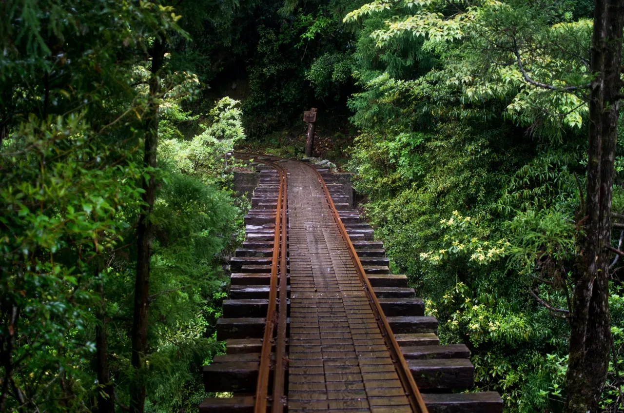 8.5kmの地点まではひたすらトロッコ道を歩きます。起伏は少ないものの、線路の上は滑りやすいため注意しながら歩きましょう。