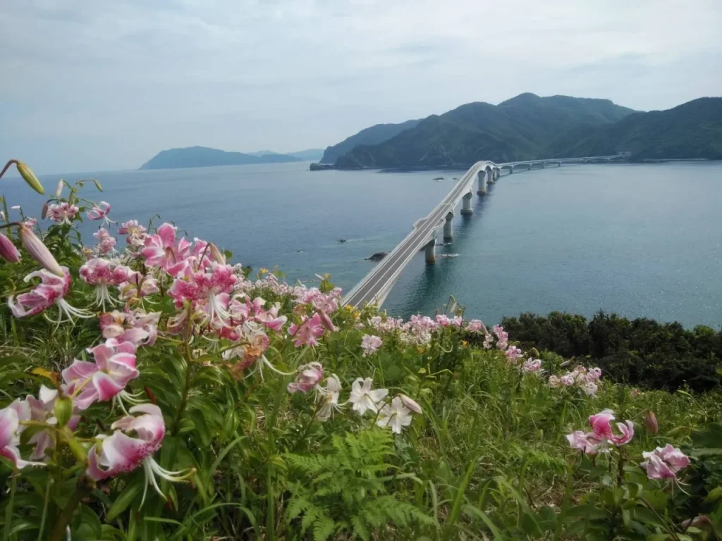 たとえば「鳥ノ巣山展望所」では、6月から7月初旬はオレンジ色の「ニシノハマカンゾウ」が、7月中旬には絶滅危惧種の「カノコユリ」を見られます。海を背景に花の写真を撮ってみるのも素敵です。